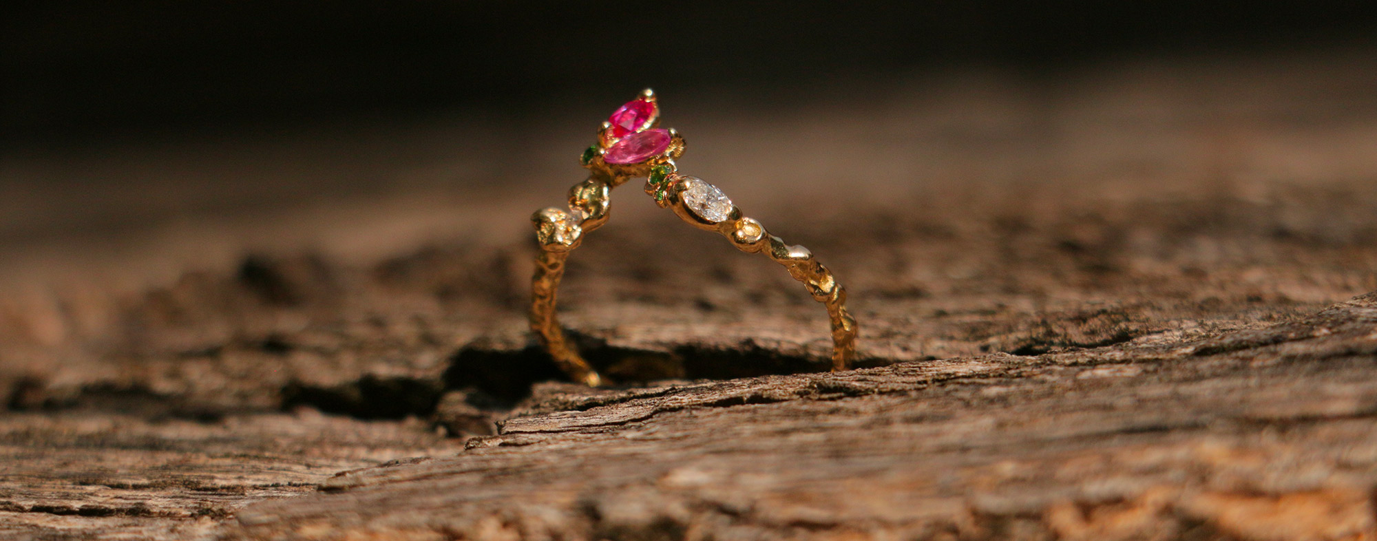 Autour de gemmes merveilleuses, la création comme l’amour ou la nature se laisse guider et trouve spontanément son chemin.
