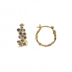Le motif à fleurs de cerisier se pare de pierres précieuses aux couleurs moirées et nous plonge dans un univers aussi enchanteur qu’envoûtant. Cette paire de boucles d'oreilles est en or jaune 18 carats. Elle est sertie de saphirs bleus et saphirs roses. Son poids est de 4 g env.